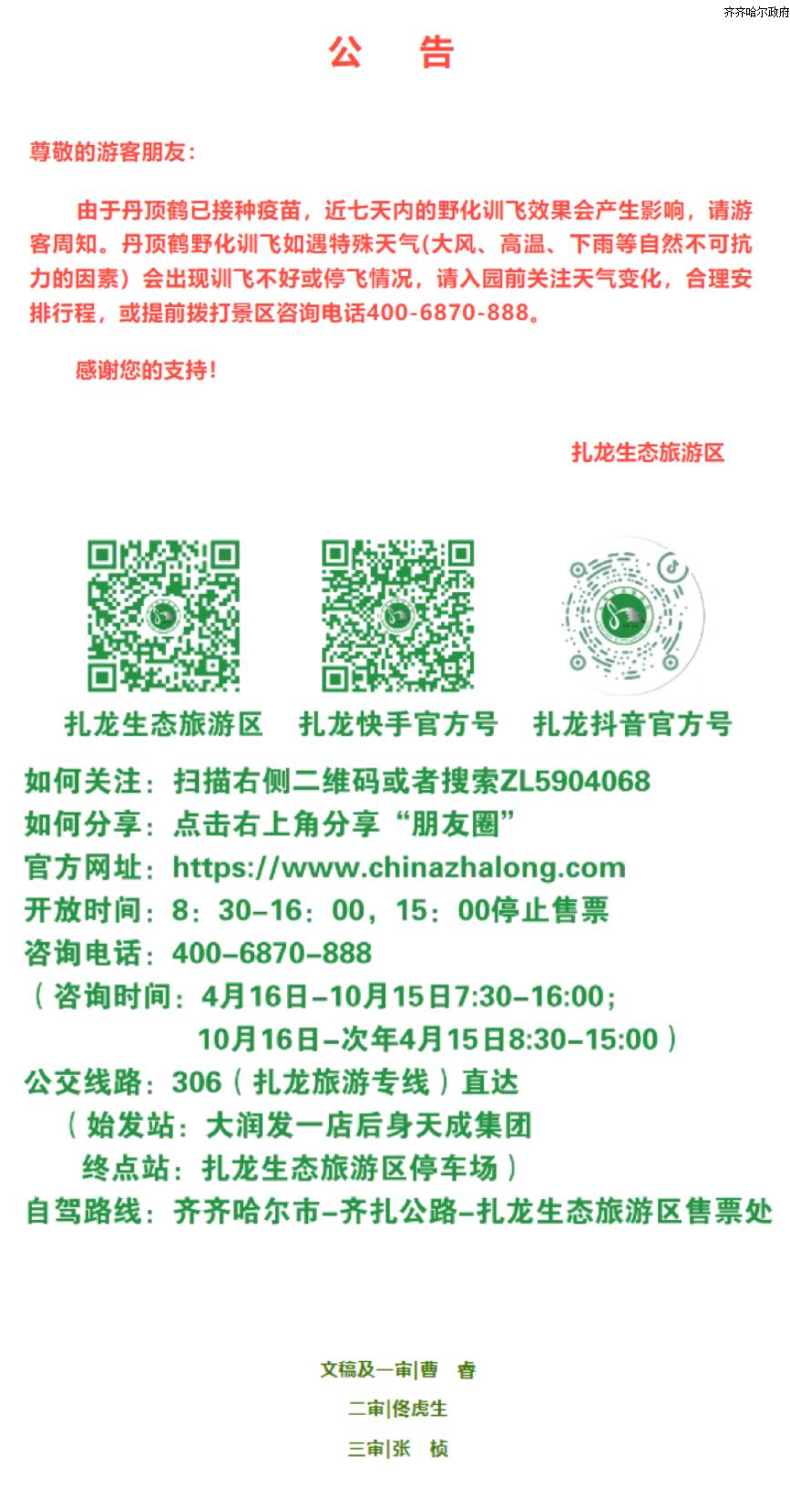 扎龙生态旅游区野化训飞公告